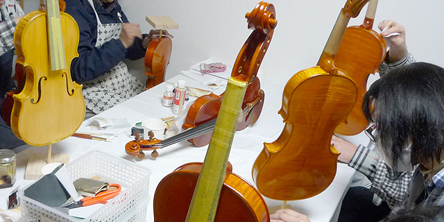 新たにビオラ工作が登場。 年内の開催日程も決まりました。日程詳細はバイオリン&ビオラ工作をご覧ください。 バイオリン&ビオラ工作 バイオリン&ビオラ工作教室(参加者790組突破!) 大好評!楽しいお声をいただいています。 簡単なキットを使って自分のバイオリンやビオラを作ります。 詳細を見る » ニス塗り教室 素敵な作品が続々と誕生しています。 楽しくニスを塗ってバイオリンやビオラを仕上げましょう。 詳細を見る » ごちらもご覧ください アルバム 工作教室の様子をご覧いただけます。 組立キット バイオリンやビオラのキットをご紹介します。 ニス塗り作品 皆さまの作品をご紹介いたします。 レッスン アットホームな弾き方教室を開催中です。 レンタル練習室 楽器練習でご利用いただけます。 注目の販売楽器 Copy of Guarneri del Gesu 1740 Ex-Heifetz News&Topics 一覧を見る » 2025.11.22 ビオラ工作をスタート 2023.11.08 バイリンガル幼児園でバイオリン工作講座を開催 2022.12.10 花やしきのクリスマスに参加 2022.06.02 ラジオJ-WAVE「GOOD NEIGHBORS」で紹介されました 2022.04.17 参加費等の価格改定のお知らせ