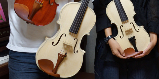 組立キット 独自開発の組立キットをご紹介いたします。 バイオリン 標準キット 小学生のお子様にも楽しんで頂ける簡単な組立キット。 お手軽 サイズ選択可 半日コース 上質キット 表板の接着や魂柱立て等が楽しめる高品質な組立キット。 高品質 4/4サイズのみ 1日コース 上質分数キット 詳しくバイオリンを知りたいお子様向けの組立キット。 お子様 1/2サイズ 3/4サイズ 1日コース ビオラ ビオラキット 待望のビオラキットが登場。高品質なビオラを手作りできます。 高品質 程よいサイズ 1日コース
