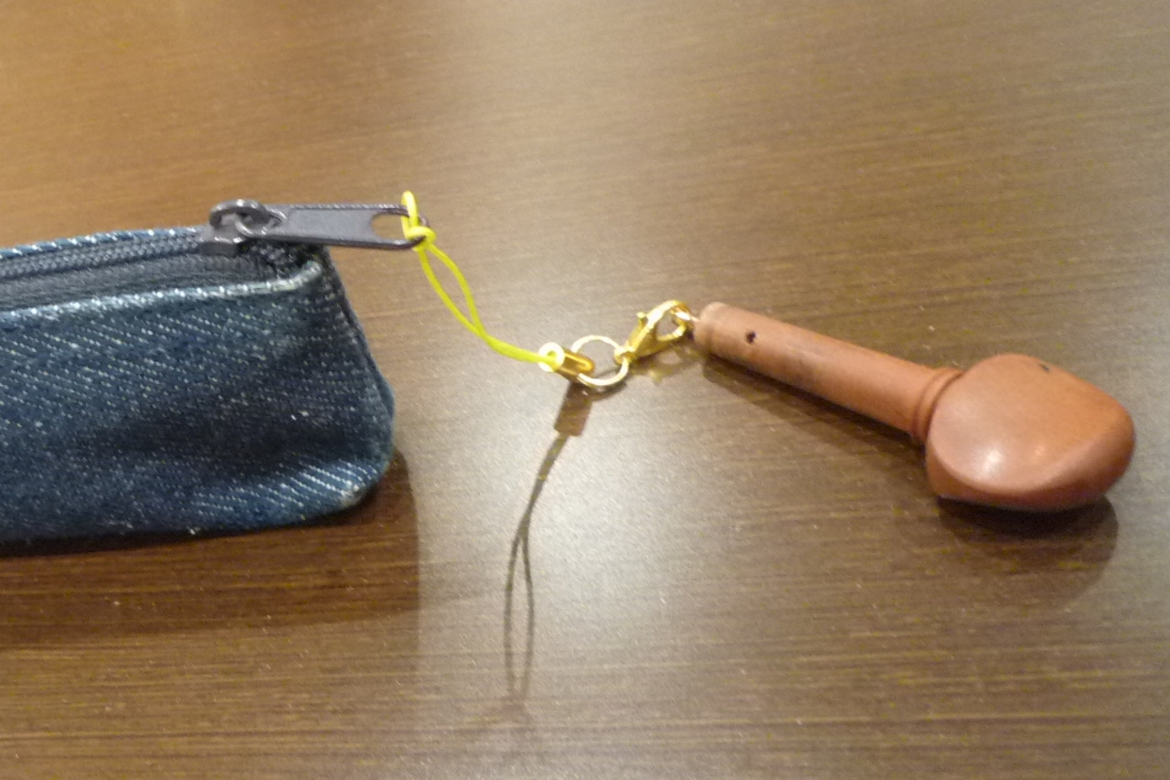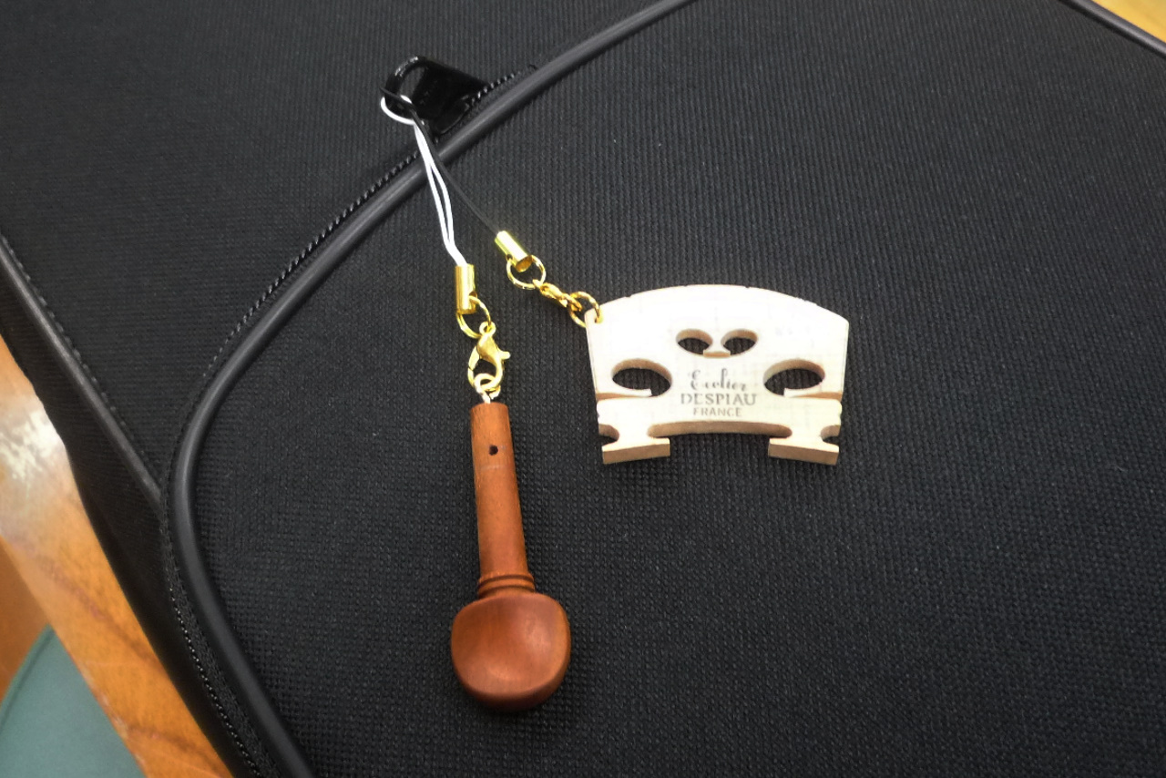 バイオリンの駒を使った手作りストラップです。