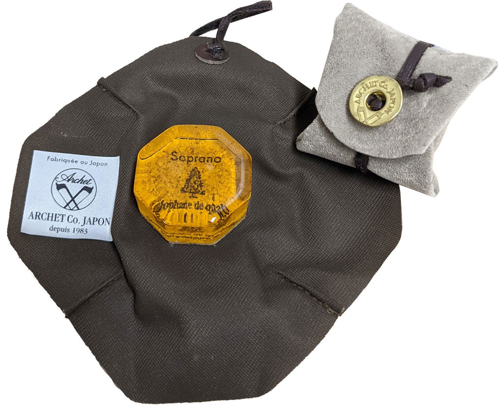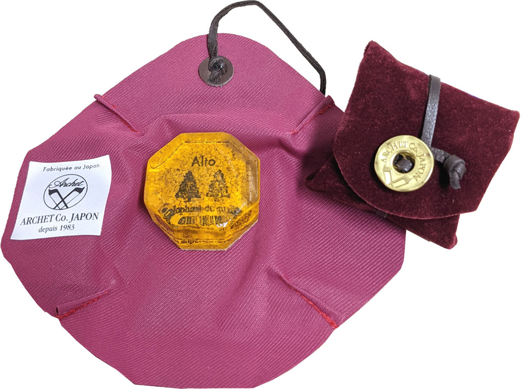 (弓(初級用)や弓(カーボン)にはお試し用の松脂が付属しますが、硬く使い勝手はイマイチです。松脂は長く使えますので、よろしければご検討いただければと思います。)