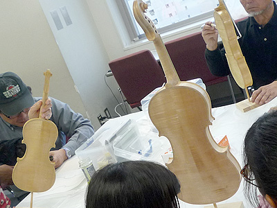 手作り仲間と楽しくニスを塗って素敵なバイオリンやビオラを完成させましょう。