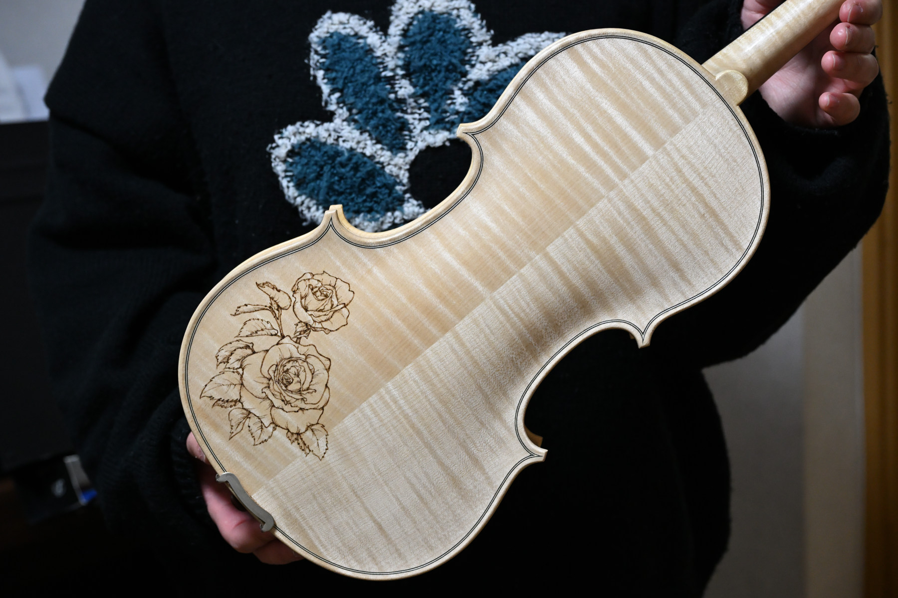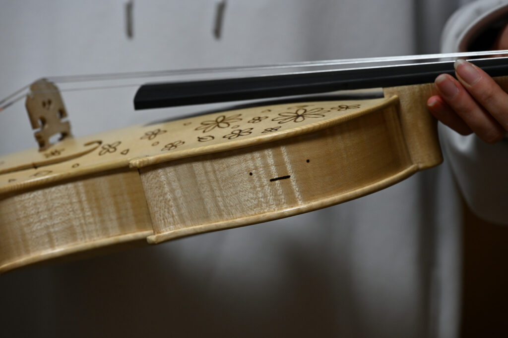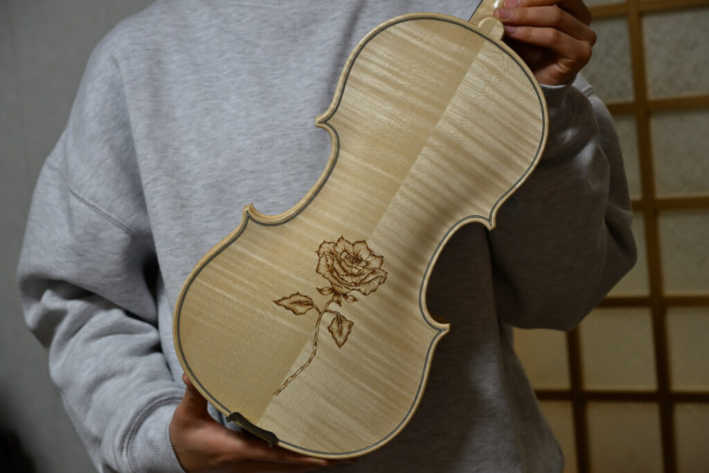 お仕事の合間を縫ってニス塗りいただきました。ありがとうございます。手作りバイオリンにも名前を付けて可愛がっていただければ嬉しいです!